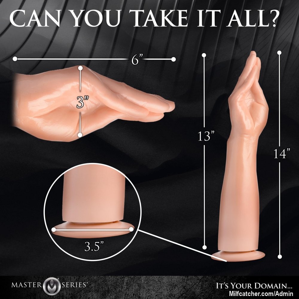 Stuff your hole with all the girth of a hand, and all the length of a forearm! Fist yourself, vaginally or anally, with the next penetrative challenge. This life-size replica of a human hand and the long arm that supports it features realistic details that will stretch you open and massage your depths. For your intro to fisting, this unique dildo is tapered at the tip with fingers that are grouped together for easy insertion. The flared base allows you to impale yourself entirely and ensures easy retrieval. The powerful suction cup can be mounted so that you can ride The Fister... hands-free! Made of a phthalate-free material, it is body-safe and compatible with silicone and water-based lubricants. Clean with a mild soap or toy cleaner after use