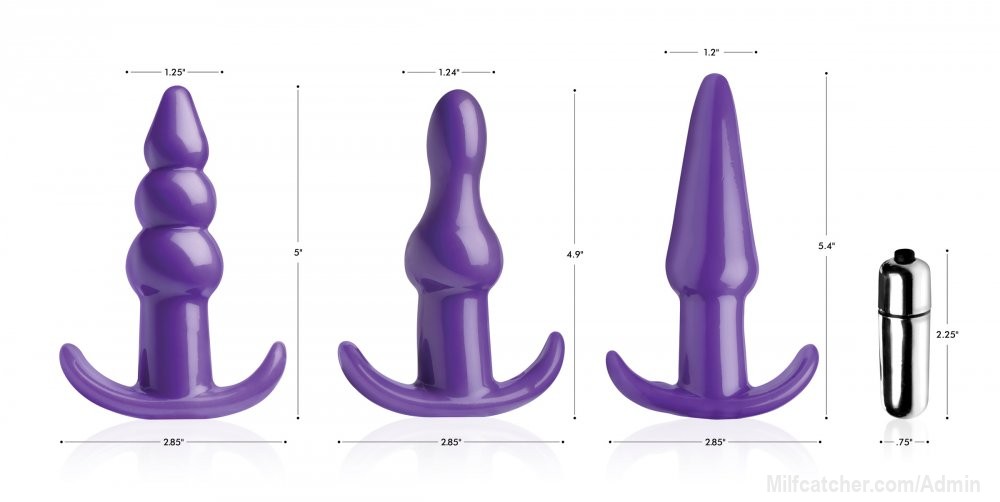 A simple but comprehensive set for the anal curious, this 4 piece kit includes a classically-shaped plug, a smoothly-bulbed design, a ribbed style reminiscent of anal beads, and a one-speed bullet vibe that slips easily into all three of them. Each plug is sleek, with just the right amount of give, and tapered for your comfort. Just slide the petite peanut vibrator into the base of the plug you wish to play with, whether you feel like a classic shape, an exciting bulge, or three pops of pleasure. The easy-to-use button operation makes playtime hassle-free and the contoured bases keep each plug safely and comfortably in place between your cheeks. This firm, yet flexible material is phthalate-free and compatible with water-based and silicone lubricants. The bullet is even waterproof for easy cleaning or use in the shower.