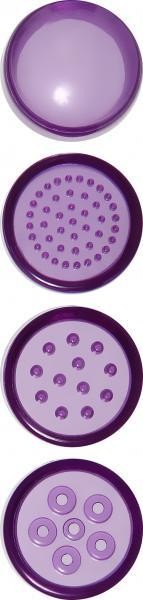 One Night Stand The Mighty One Pocket Rocket Purple with 4 attachments. Powerful mini pocket rocket multi-vibe 4 different textured attachment for unique sensations. Made from smooth ABS plastic. Pocket rocket vibrator requires 1 AAA battery, not included. Sold separately.
